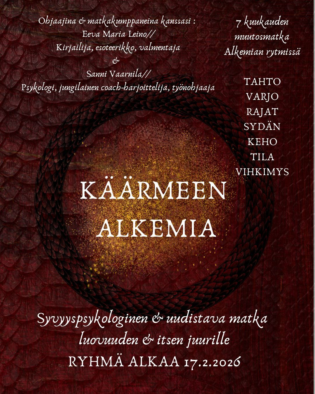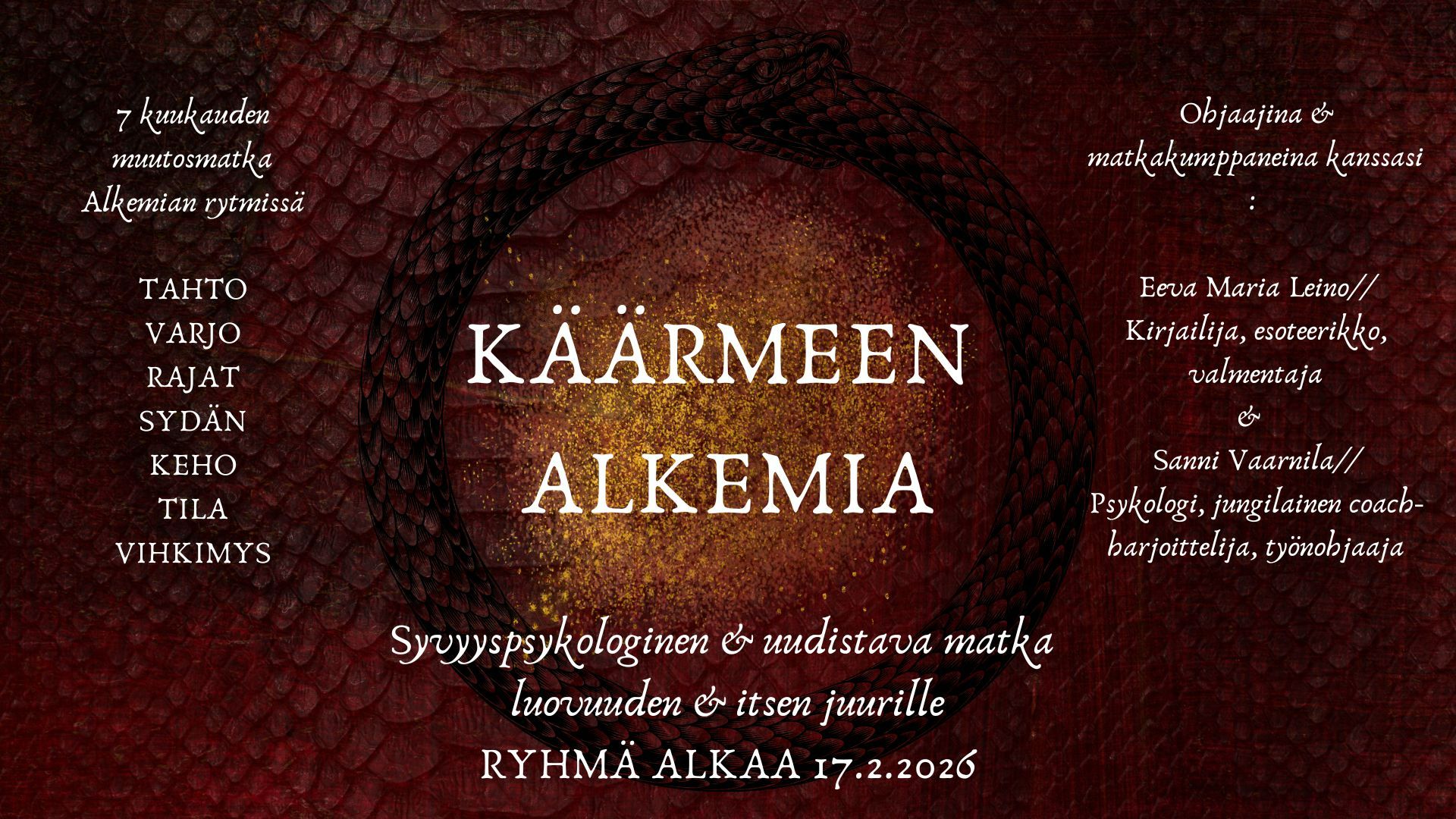 Ikivanhan alkemian kaava toimii pohjana matkalle jota ohjaa syvyyspsykologinen viisaus ja syventyminen todellisemman itsen äärelle.